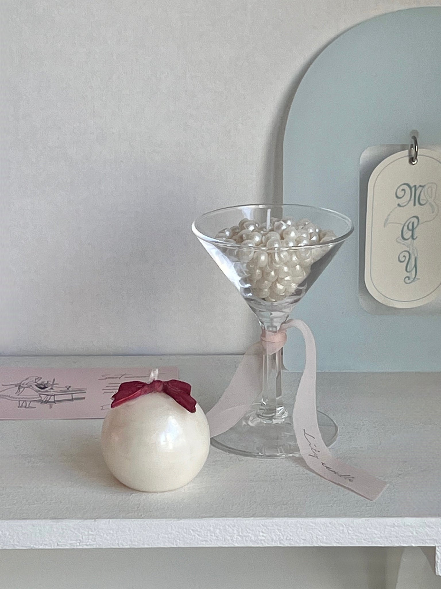 - Pearl ribbon candle